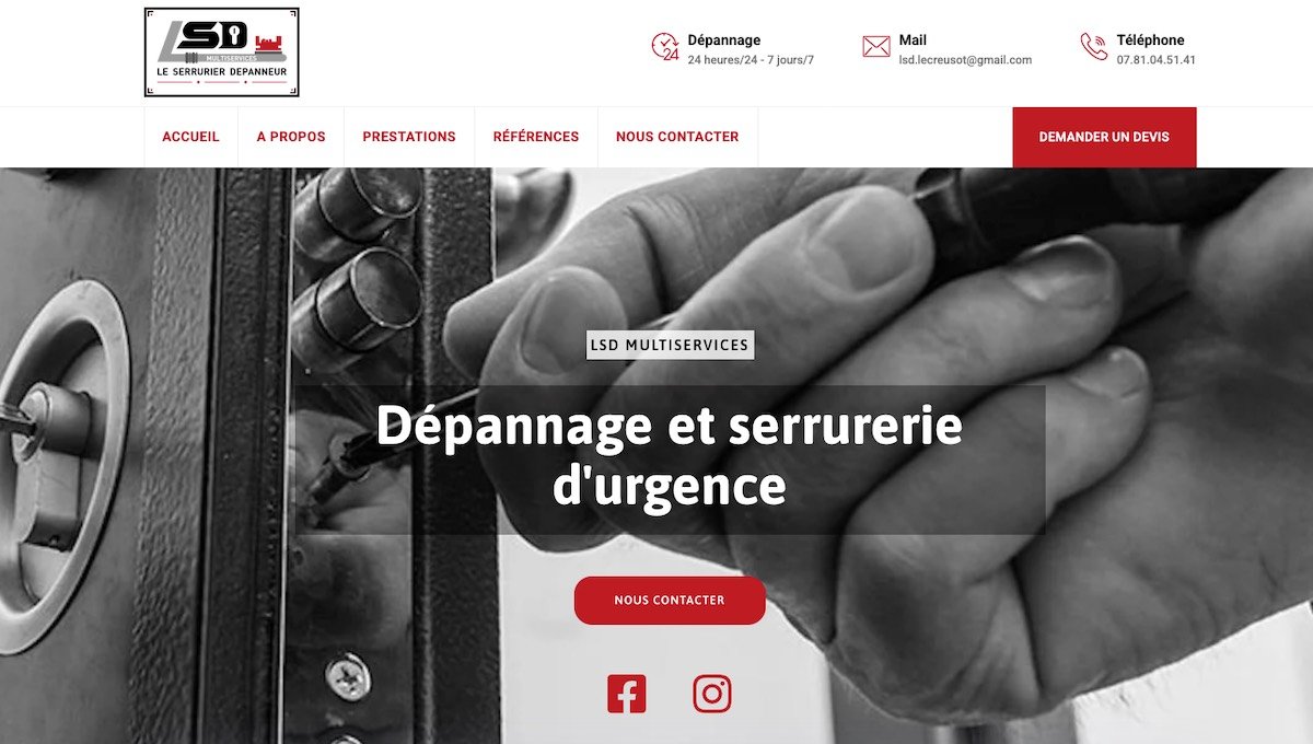 LSD Multiservices est une entreprise de serrurerie qui vient de se créer sur le Creusot, par Patrice Badia. Il intervient comme serrurier d’urgence, en maintenance immobilière et sur les contrôles d’accès. Patrice a émis le souhait d’un site avec l’essentiel en contenu texte, ainsi que des images explicites, et une charte graphique en accord avec le logo réalisé par HD Publicité. L’ensemble est plutôt réussi, vous en conviendrai. Toutes ses prestations sont sur son site officiel: www.lsd-multiservices.fr. C’est un service qui peut être utile, voire indispensable en cas d’urgence. Pensez à LSD Multiservices.